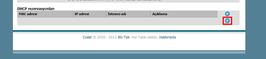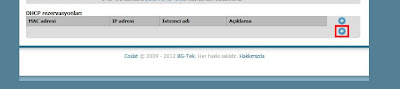 " + " ya tıklayarak . Açılan sayfada istenilen istemcinin MAC adresi ve DHCP tarafından atanmasını istenilen IP adresi girilir.