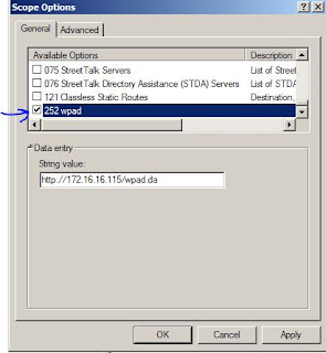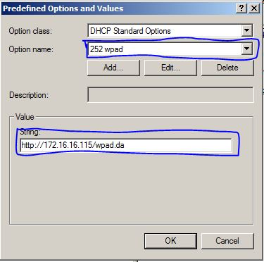Bu sayede Coslat DHCP üzerinden ip adresi alacak kullanıcılar Wpad dosya bilgisini de alacaklar ve Wpad.da dosyasında belirtilen proxy bilgisini okuyacaklardır.