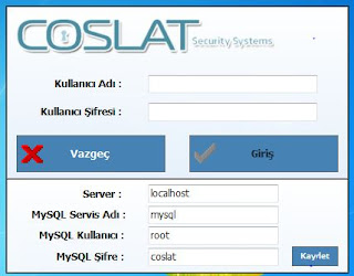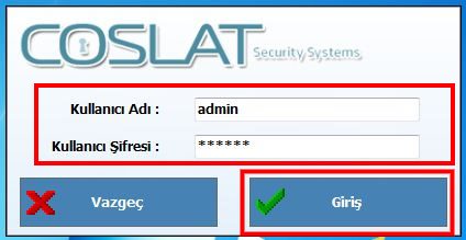 Veritabanı bağlantısı sağlandıktan sonra Coslat Monitor uygulaması varsayılan kullanıcı adı "admin" ve şifre " coslat " ile açılır.