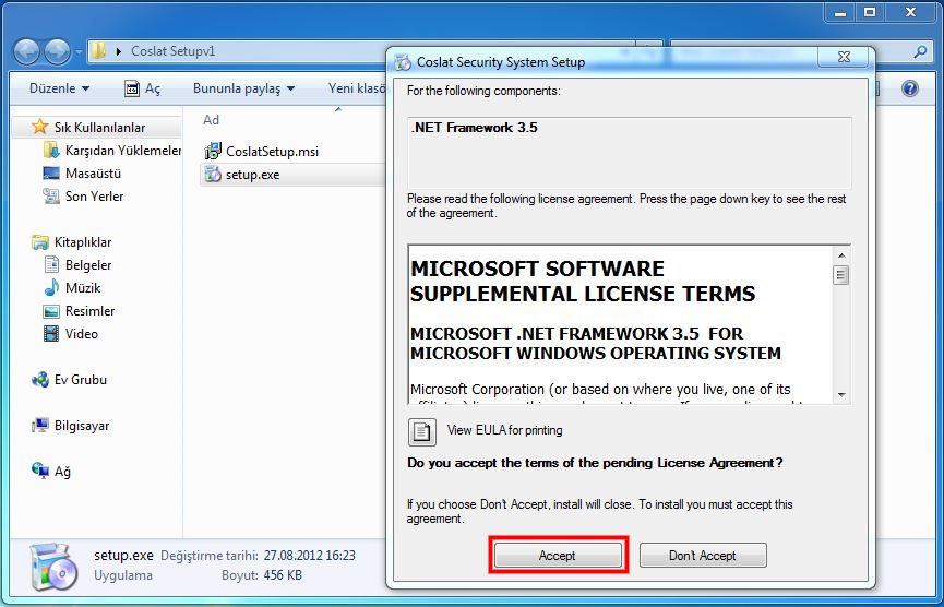 http://www.bg-tek.net/download/Coslat_Setupv3.zip adresinden indirilen arşiv dosyası winrar ile açılarak kaydedildikten sonra açılan klasör içinden. "Setup.exe " yi çalıştırınız. Onay istedikten sonra sistemde eğer .Net framework 3.5 sürümü yok ise internetten indirme işlemine başlayacaktır.