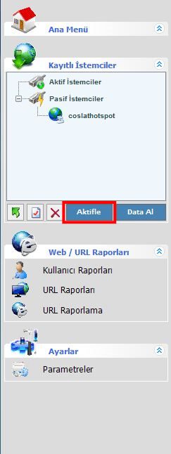 İstemci bilgileri girildikten sonra Raporlama uygulaması aktive edilerek çalışmaya başlayacaktır.Aktivasyon için istemci seçilerek aktifle butonu kullanılmalıdır.