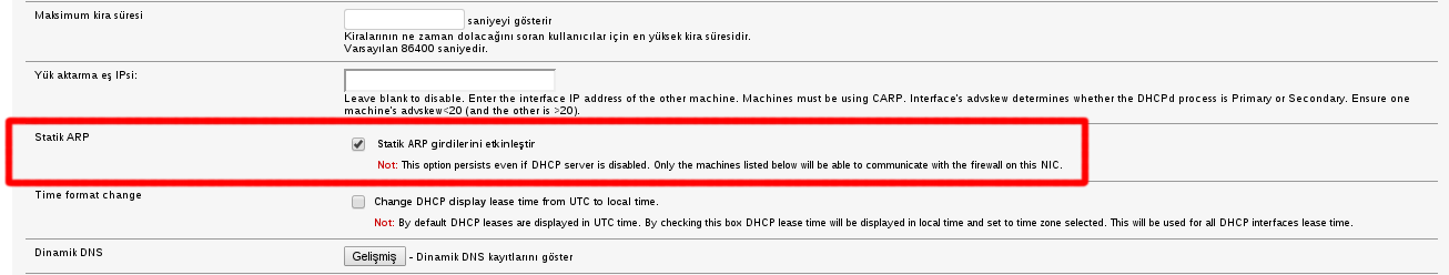Statik ARP : Bu seçenek aktif edildiği zaman sadece rezerve olan istemciler Coslat'ın arayüzüne ve internete çıkabilirler.